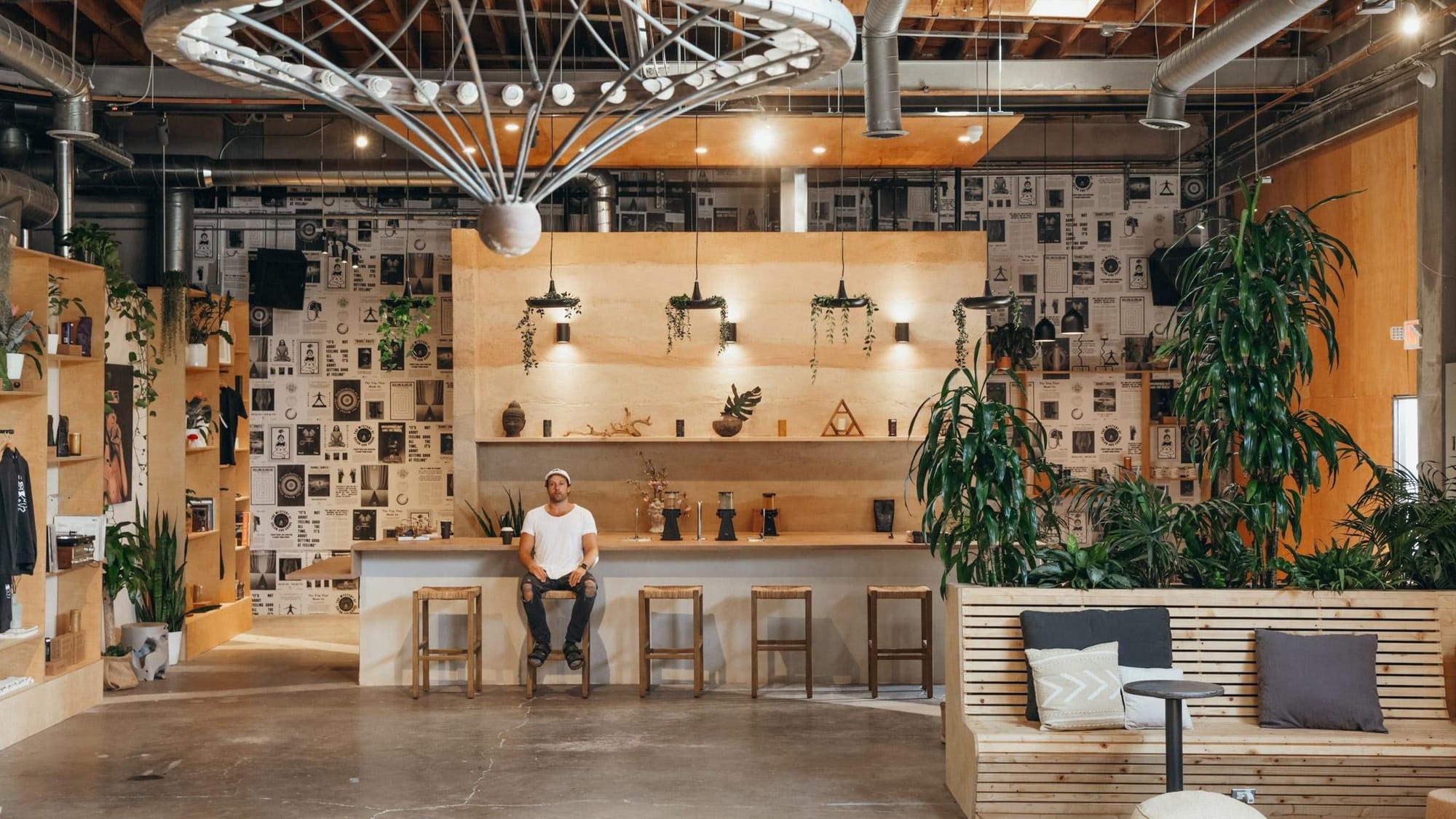 The flagship site, at 2515 Main Street, was once a carpet factory and offers a whopping 5,748 square foot space to work with, plus really cool aircraft hangar-style sliding doors. The interior renovation uses a lot of pine, combining it with a fashionable industrial aesthetic, together with lots of green foliage, which effectively creates a very chilled albeit potentially agoraphobic environment.