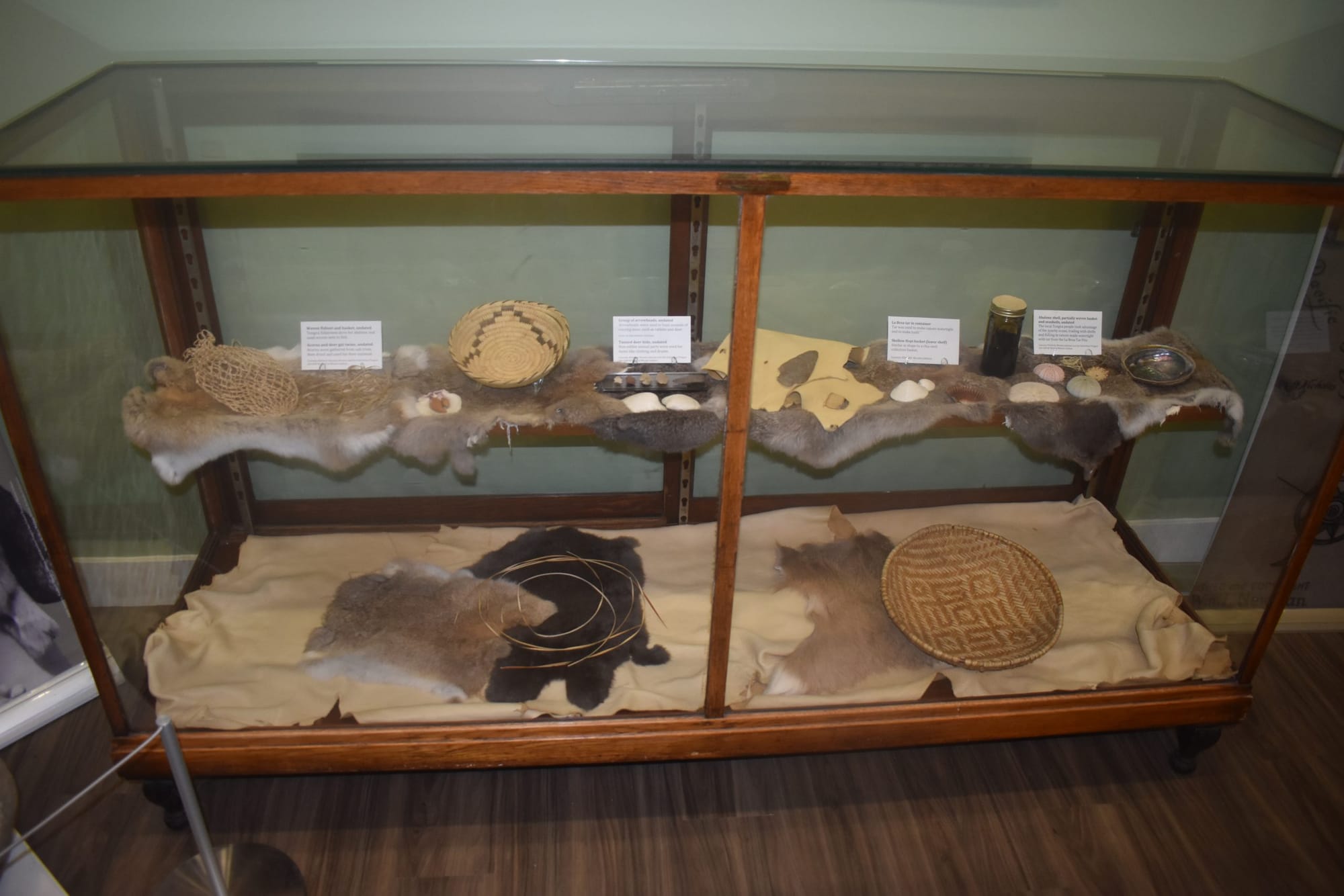 The exhibit, which can be seen in a side room separate from the museum’s main exhibit hall (which holds the "Unhoused: A History Of Housing In Santa Monica" exhibit), begins with the story of the Tongva people. Regarded as one of the most influential of California’s native societies, they inhabited many of the Los Angeles County areas we know today, choosing settlement location "based on food supply, reliable water and protection against flooding." The Los Angeles River supported the settlements of the hunter-gatherer society, with the exhibit showcasing such materials as a woven fishnet and basket, as well as arrowheads that were used to hunt animals like rabbits and deer.