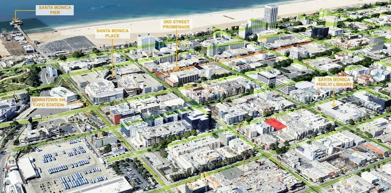 Madison has since pursued redevelopment of several former NMS sites with high-rise buildings, including two other projects in Downtown Santa Monica, 601 Colorado (24 stories, 264 units, 40 affordable, 203 parking spaces) and 1435 5th Street (18 stories, 422 units, 64 affordable, 184 parking spaces).