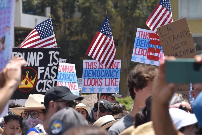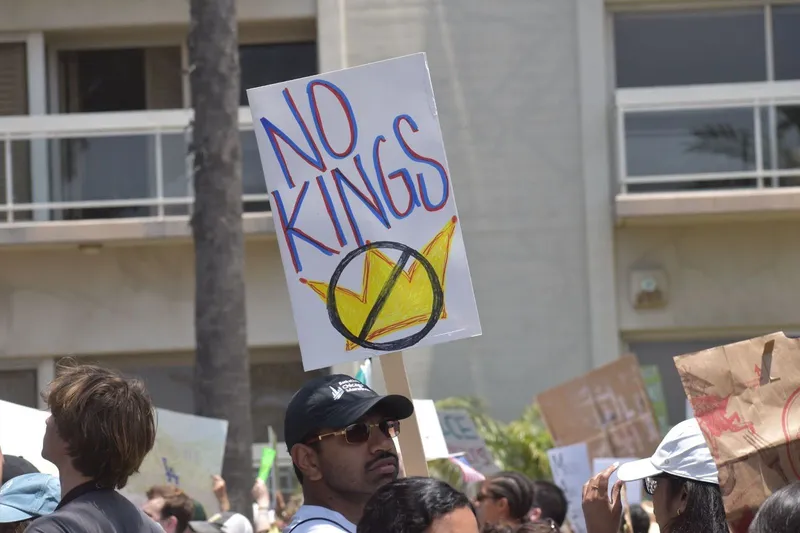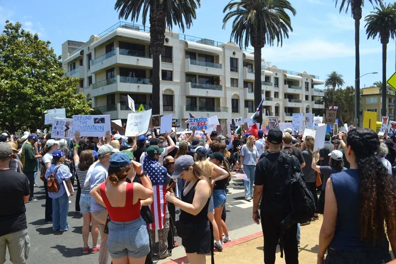 Santa Monica’s No Kings protest was passionate but peaceful Saturday morning as thousands of residents took to Palisades Park. Participants chanted, held signs and walked through the park to the Pier entrance in opposition to the Trump administration and recent immigration raids.