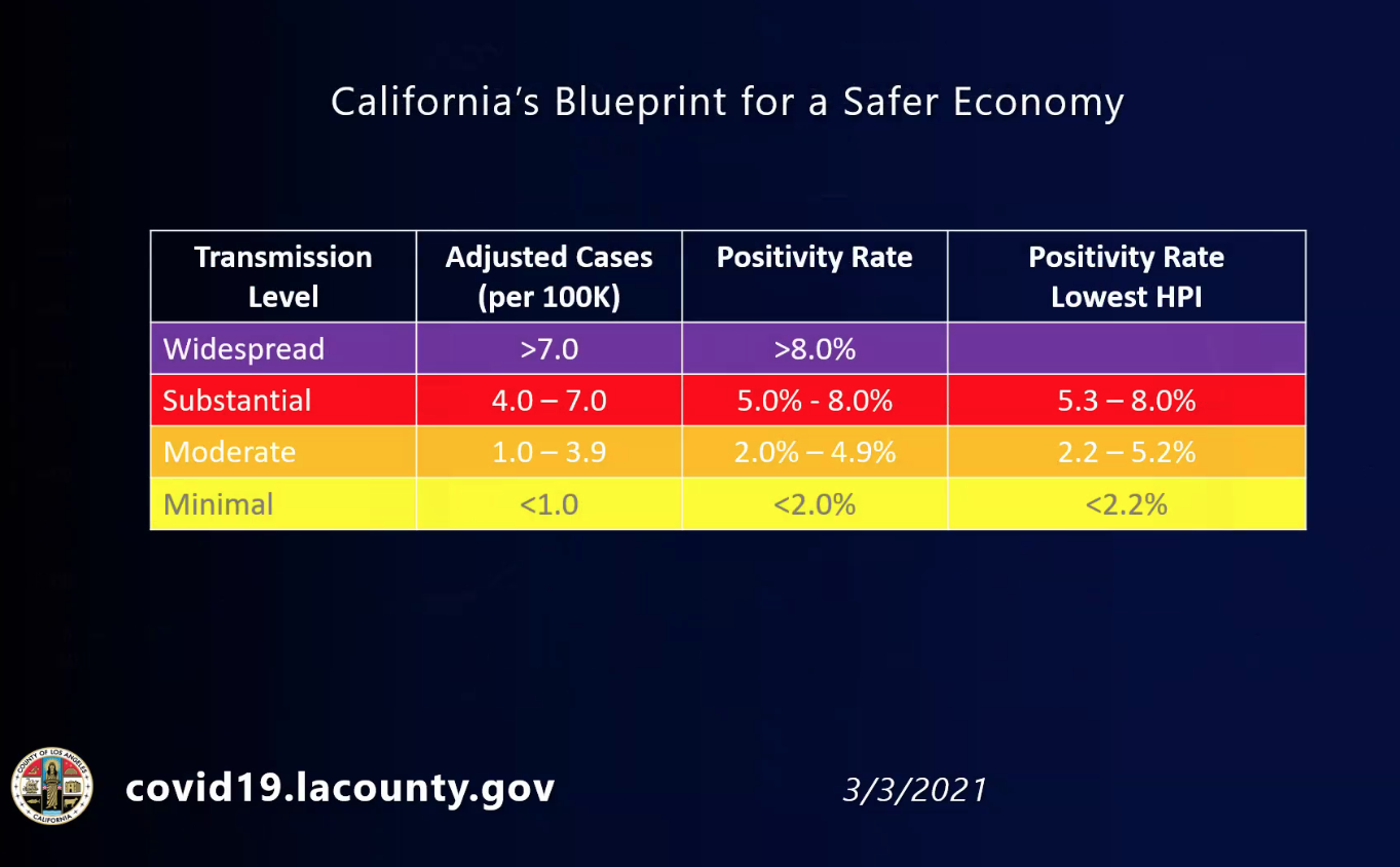 Public Health Director Barbara Ferrer said it’s “very possible that we’ll enter the red tier as early as next week” as County case rates are currently at 7.2 per 100,000 residents.