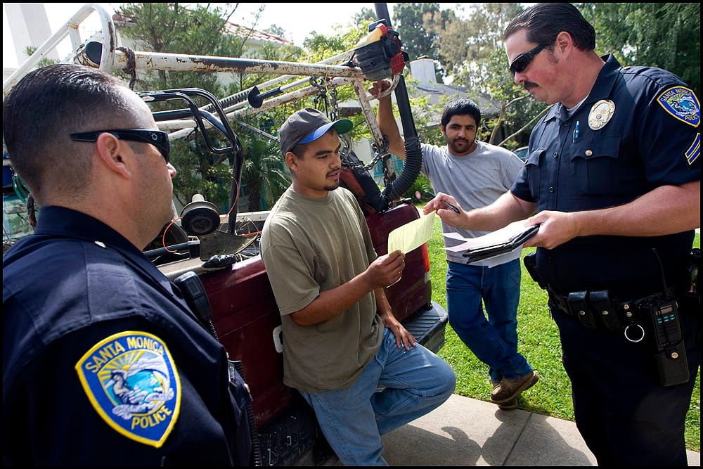 Some "mow-and-blow" operators won't have businesses licenses in Santa Monica, which they are required to have, and may not be able to show identification, making it difficult to cite them.