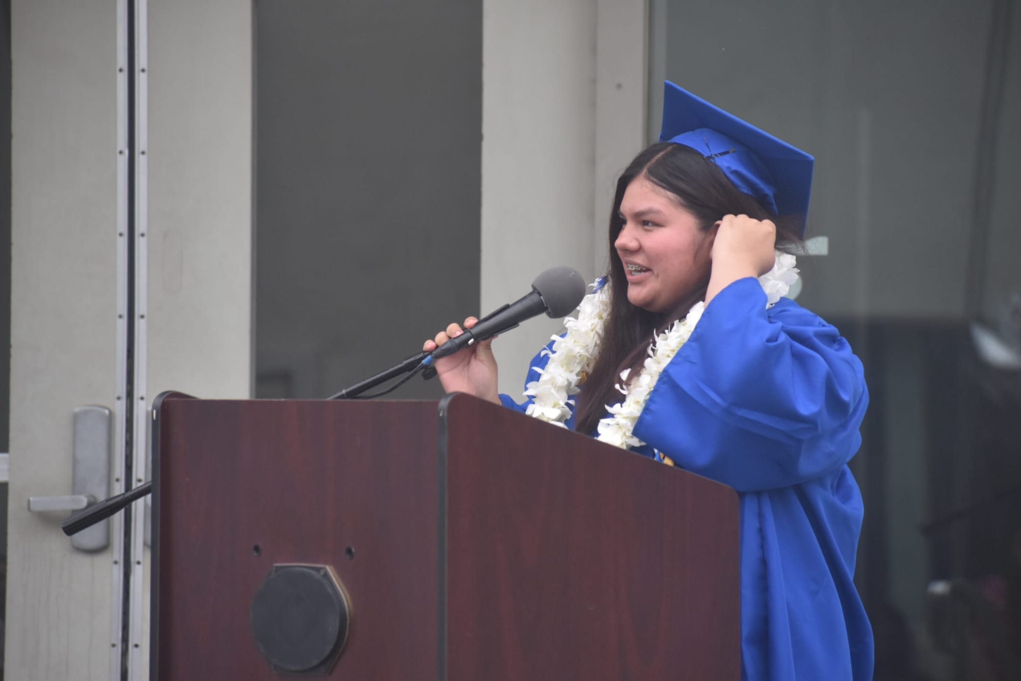 Three of the Olympic seniors took to the stage to speak on their time at the school, including Elijah Medina, who transferred to Olympic after being told by his former school that he was credit deficient and wouldn’t be able to graduate on time. He said that Olympic gave him “multiple opportunities” to accomplish his goals, a point of pride alongside learning opportunities like being a youth group leader at his church and a coach for his younger brother’s little league baseball team.