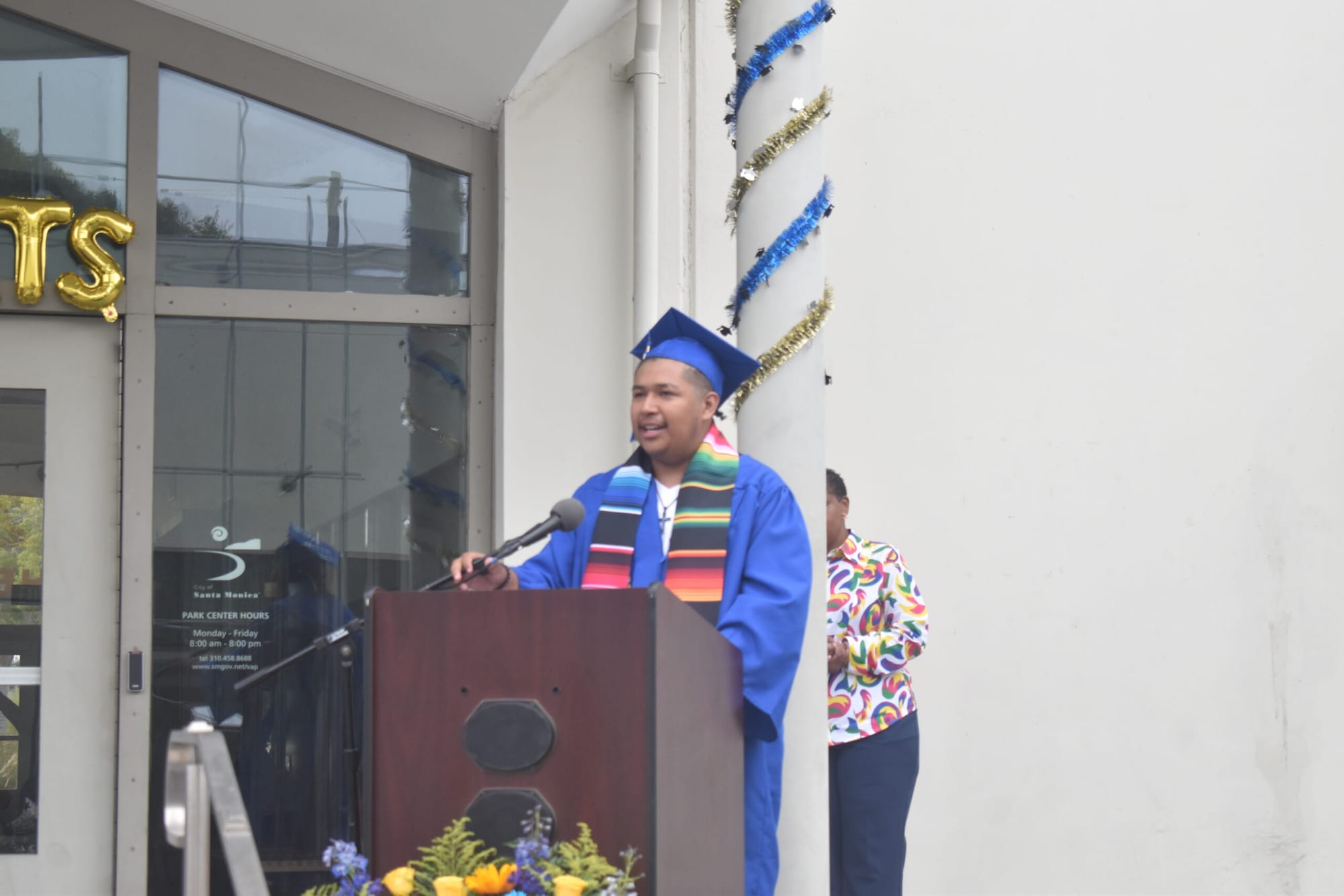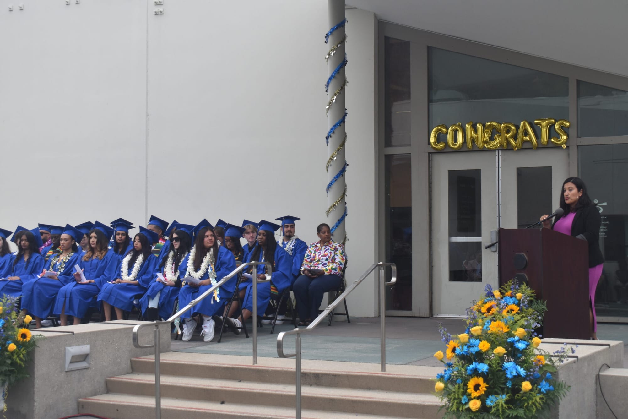 The ceremony’s keynote speaker was Ana Jara, who manages the Santa Monica Police Department’s Leadership, Engagement, Achievement, Discovery program that meets with Olympic students each week. The meetings aim to create connections between youth and police officers in a friendly, collaborative environment, and is something Jara said the “team looks forward to every week.”