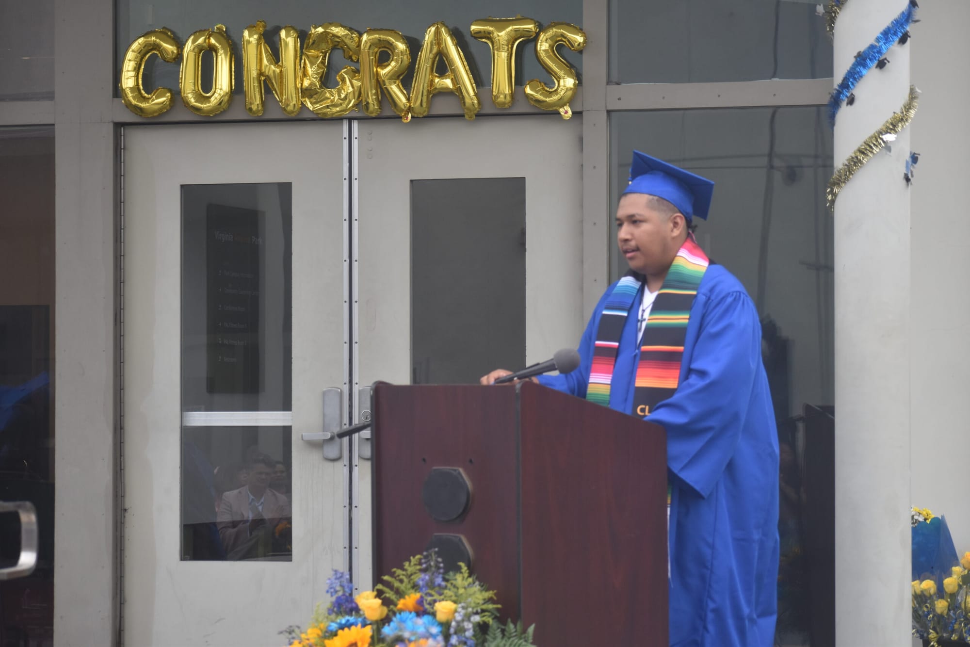 Fellow senior Daisy Estrada added that she was doubtful at times during her high school experience, but knew that “not graduating would never be an option.” Estrada thanked her family, including her cousin who “bugged” her to attend school every morning. Alyn Crespo, who was called to speak last-minute, also had praise for a key family member in her journey.
