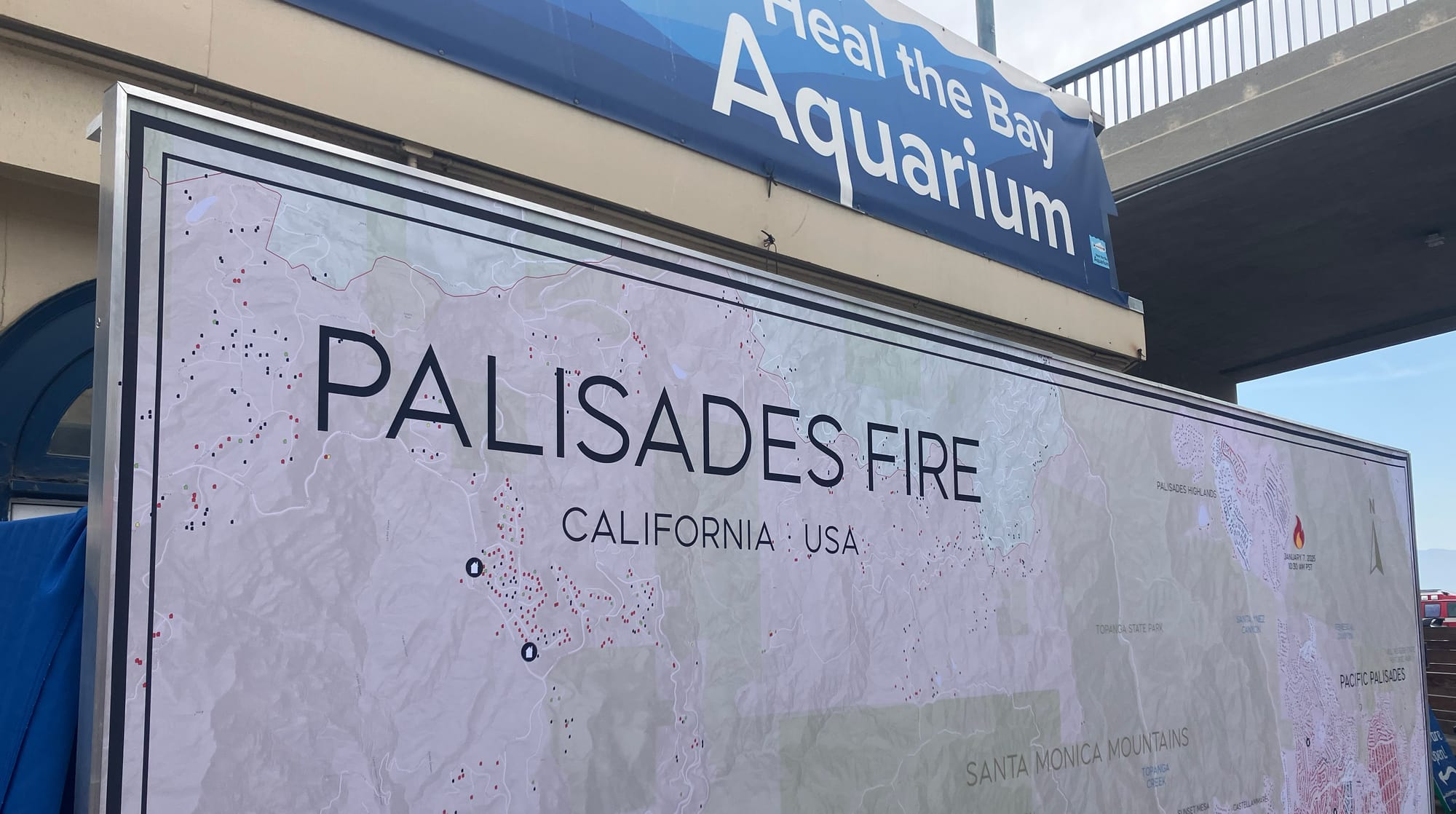 A billboard-sized fire damage map now on display at the Santa Monica Pier Aquarium is helping residents, visitors and policymakers grasp the full extent of the devastation caused by the Pacific Palisades wildfire.