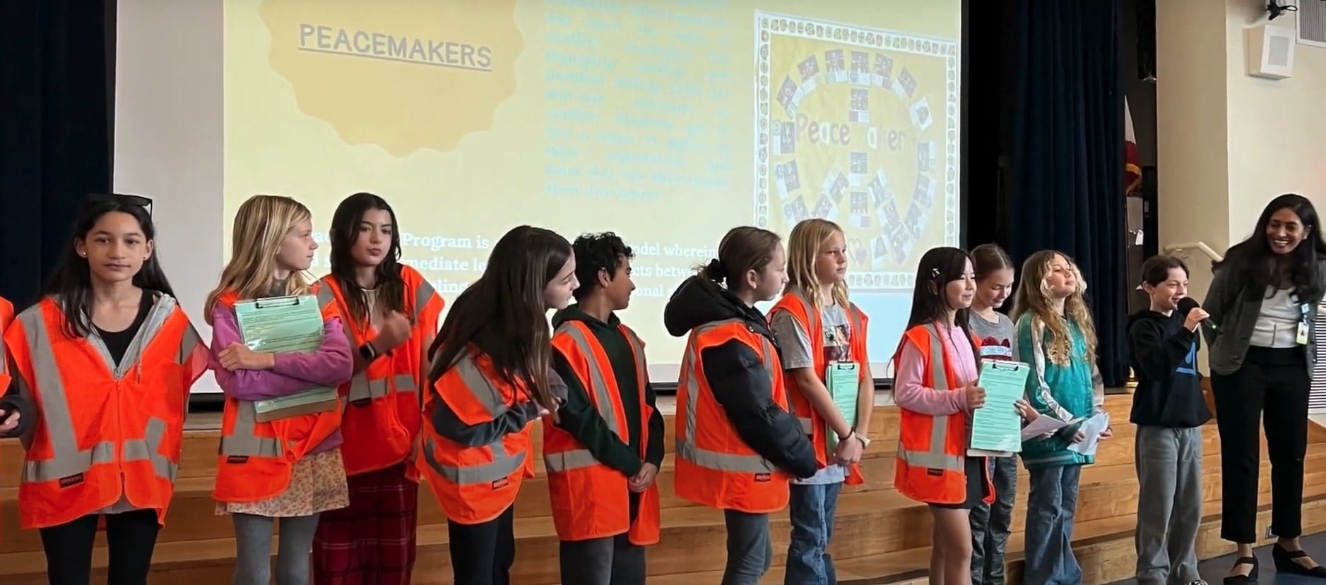 In October 2023, the initial class of 25 Peacemakers donned bright orange vests with peace signs on the back, taking turns in the Will Rogers yard every recess and lunch time to support classmates in potential disputes. Both Daruty and Dadabhoy wanted to instill the peer mediation model in order to give students autonomy to resolve their own issues.