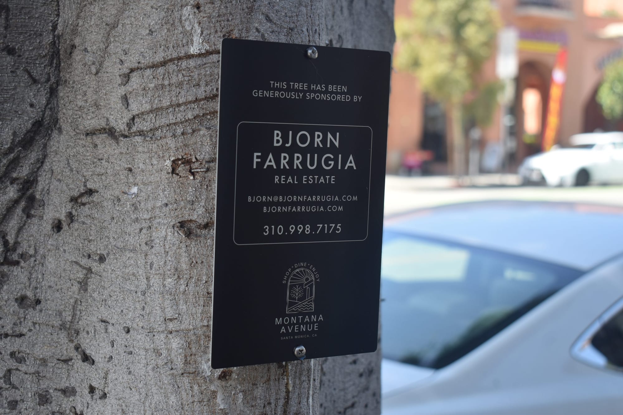 This past month, the Montana Avenue Merchant Association installed specialized plaques onto the street’s ficus trees, placed between 7th and 17th St. to recognize sponsors of a lighting program on the street. Montana was lit up at nighttime in prior years to illuminate businesses, including during the holidays, and Association President David Kianmahd felt that bringing back the lights would help retailers that have been “suffering” in the post-pandemic period.