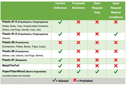 The rule applies to anyone serving prepared food within city limits and stipulates the allowed disposable items be provided only upon request. Plastic straws can still be given to customers who require their use due to a medical condition.