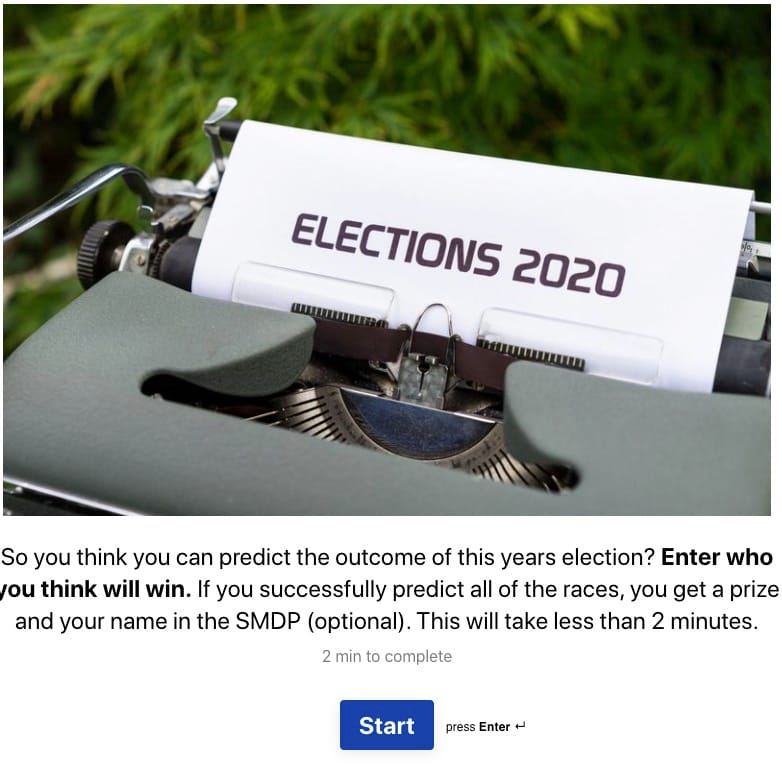 Prizes range from gift cards to local businesses to some cool smdp swag if you get 100% of the local predictions correct. It's fun and just takes a couple of minutes!