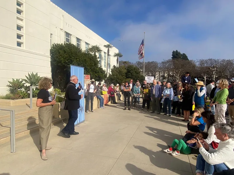 Residents gathered outside the Santa Monica City Council meeting on Tuesday to advocate for the Fairview Branch library. As the city faces a budget deficit, the Council had floated an idea to close and sell the property. While that was just an idea and no formal proposals are in place to close the facility, residents still took to the microphone to advocate for more funding for the branch in specific and for the system as a whole.