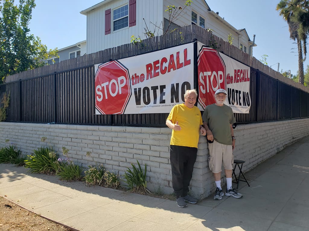 Newsom: Progressive Landlords of Santa Monica, Jay Johnon, Mathew Millen and Michael Millman installed “VOTE NO ON RECALL” signs recently. Stop the Recall of Gov. Newsom signs were installed at 21st Place/Montana and 20th/Virginia. The group supports Rent Control and works to improve its’ effectiveness for both tenants and Landlords and to preserve existing rental housing in Santa Monica. Courtesy photos