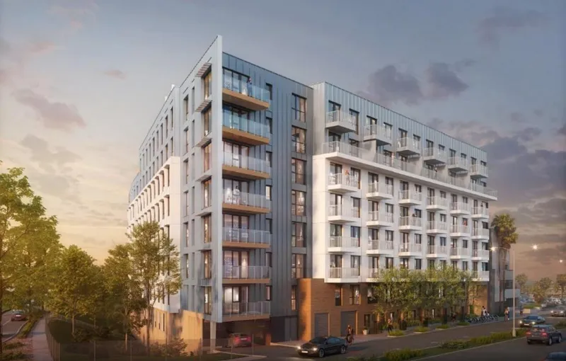 The eight-story, 87-foot-tall project at 1640 5th Street would include 15 affordable units and sit on an irregularly shaped parcel adjacent to the I-10 freeway and near the Downtown Santa Monica Metro Station, making it highly visible to people entering the city.