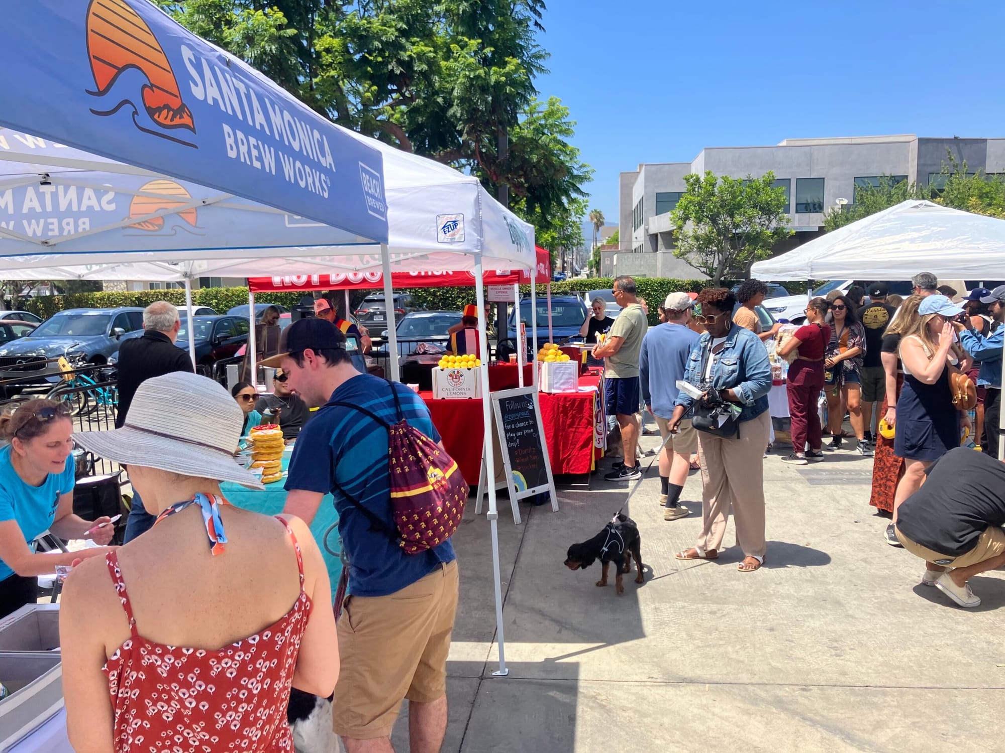 The Santa Monica Brew Works and Los Angeles non-profit dog rescue, HIT Living Dog Rescue, teamed up with Hot Dog on a Stick to host a charity fundraising event on Sunday in the glorious summer sunshine.