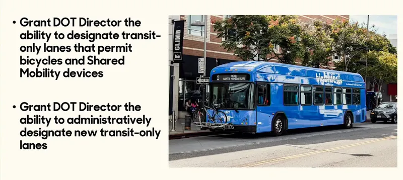 The amendment also grants the Transportation Department director administrative authority to designate new transit-only lanes without requiring council approval, providing flexibility for upcoming major events including the 2026 World Cup and 2028 Olympics.