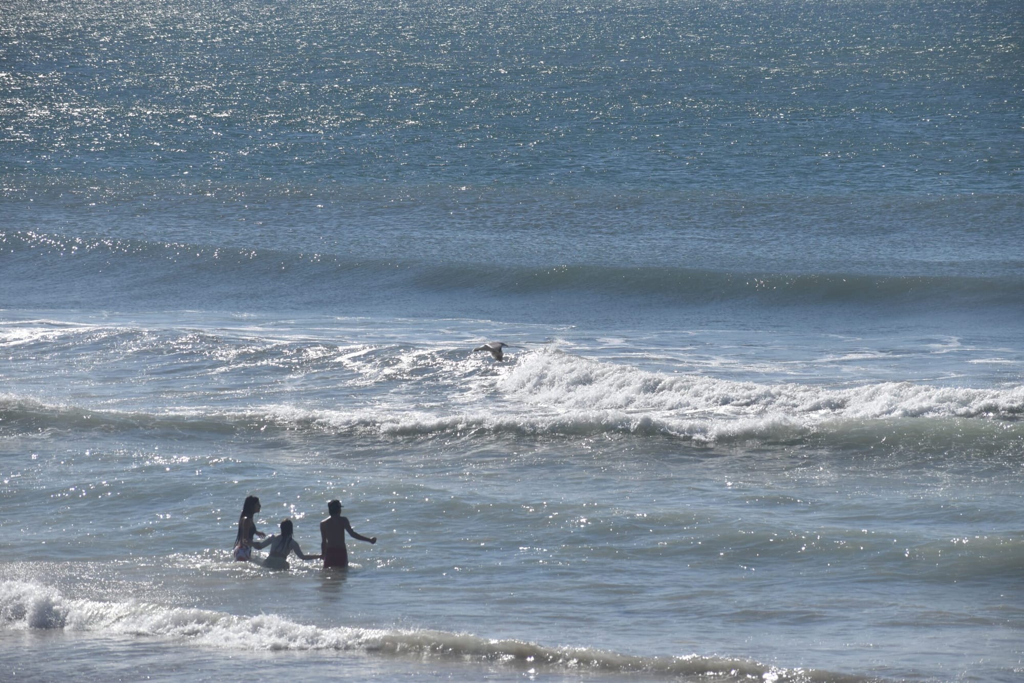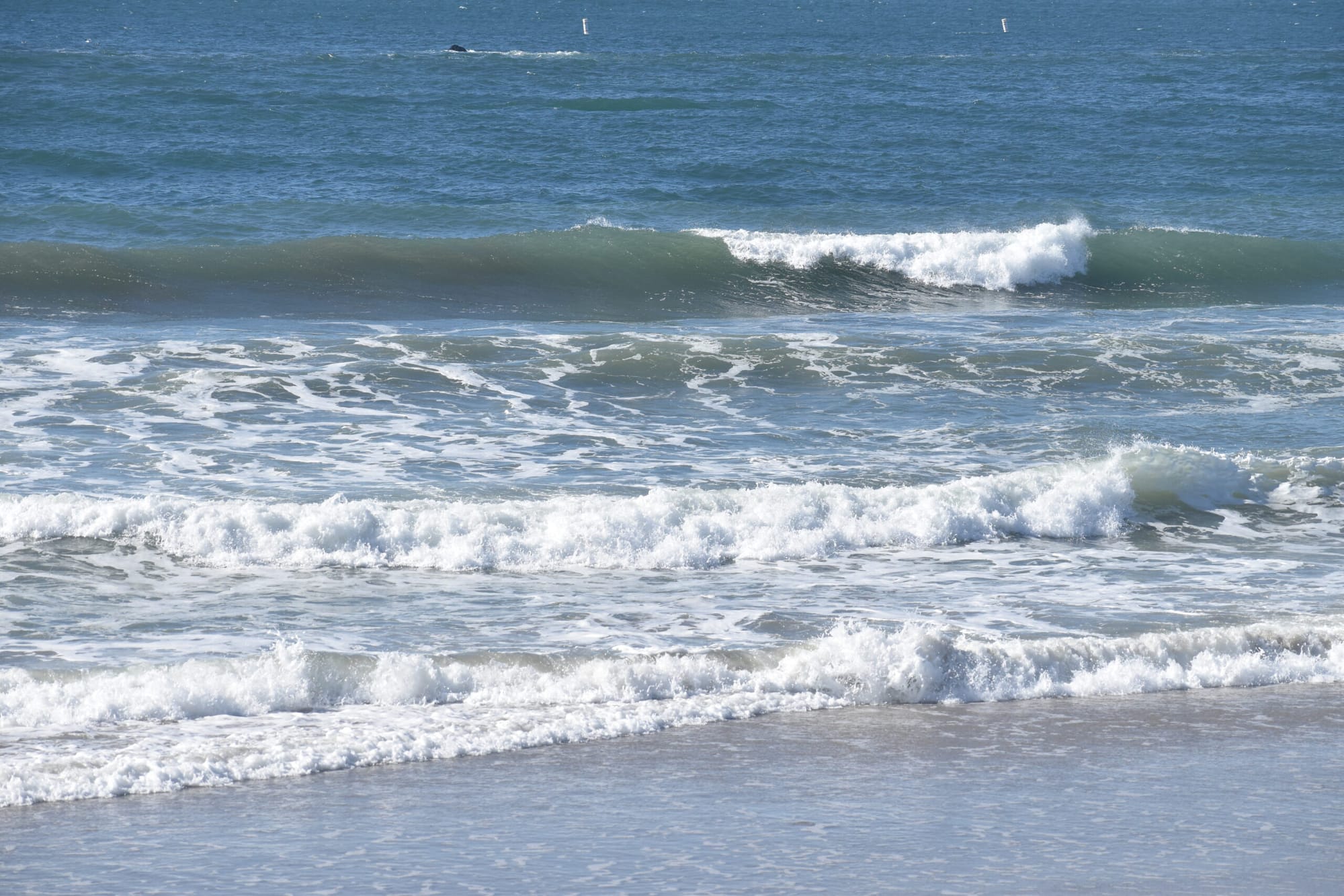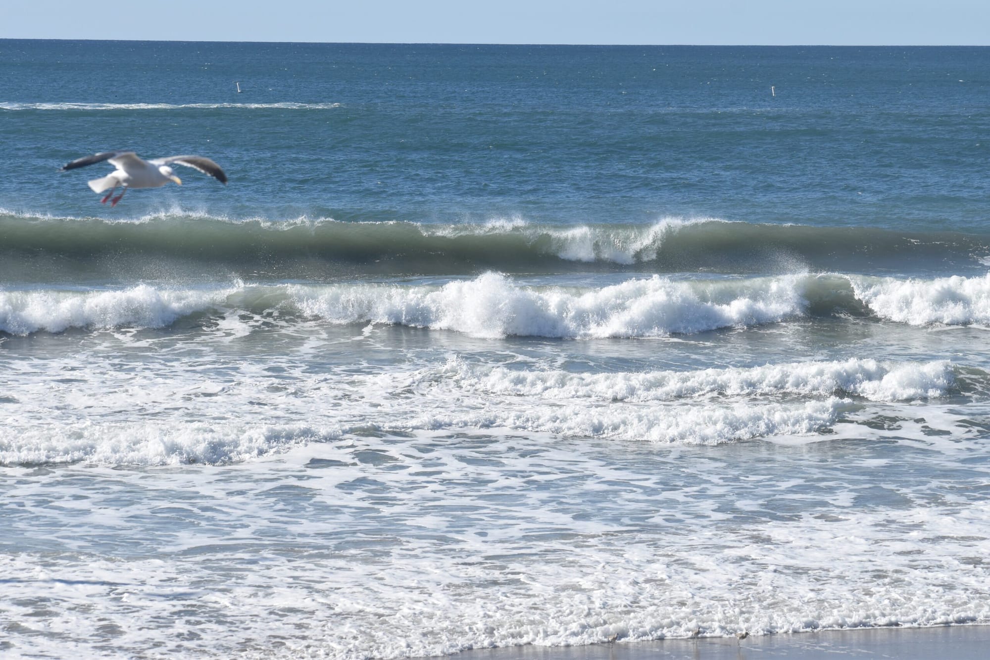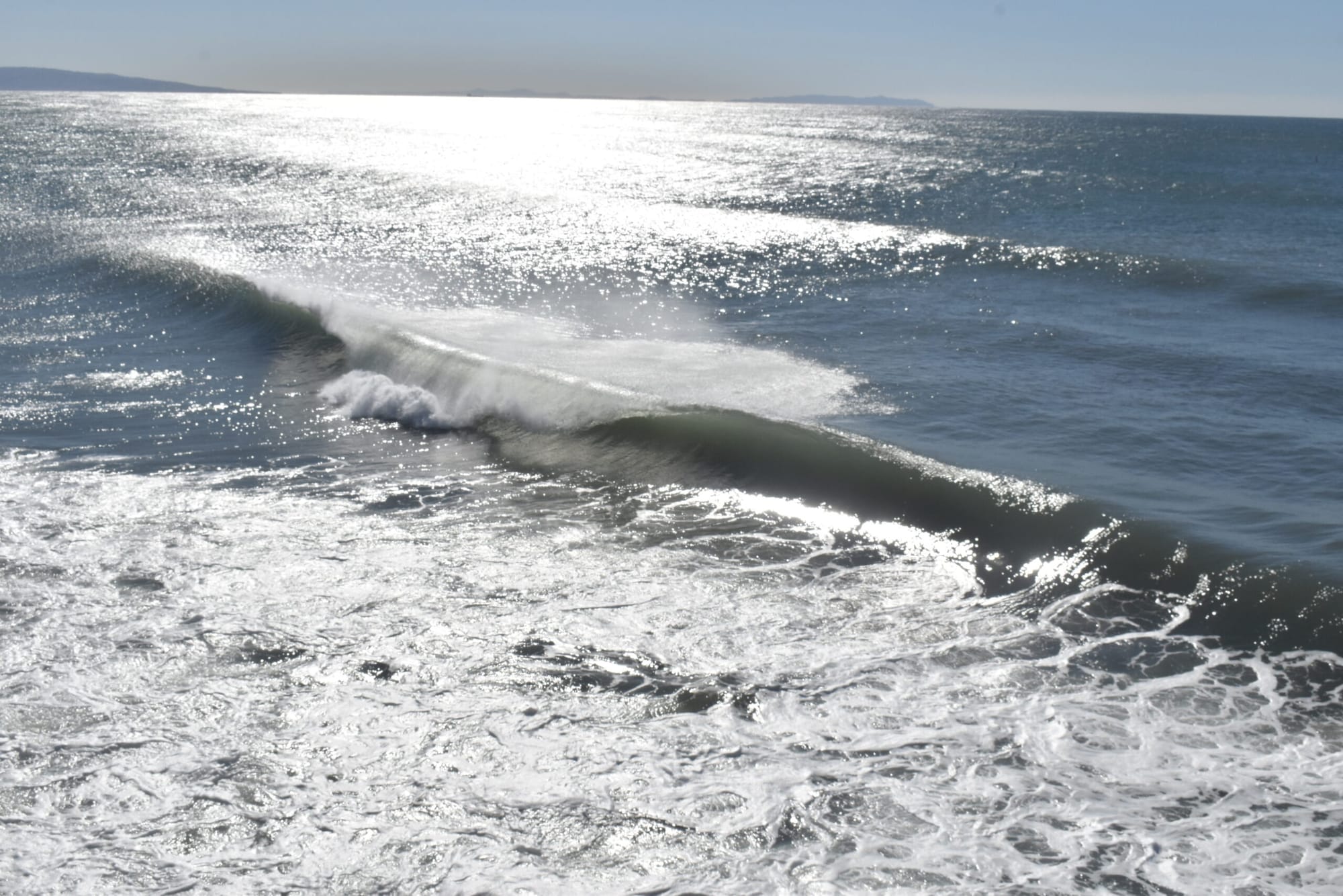 Visitors to Santa Monica Beach Thursday were greeted with a rare sight, as the Pacific Ocean dispensed sizable waves during the late morning hours.