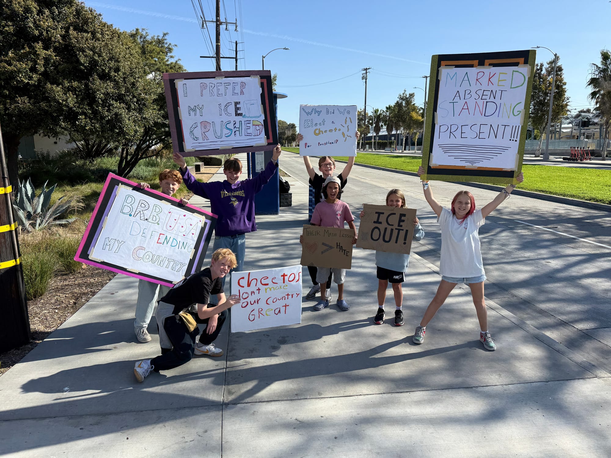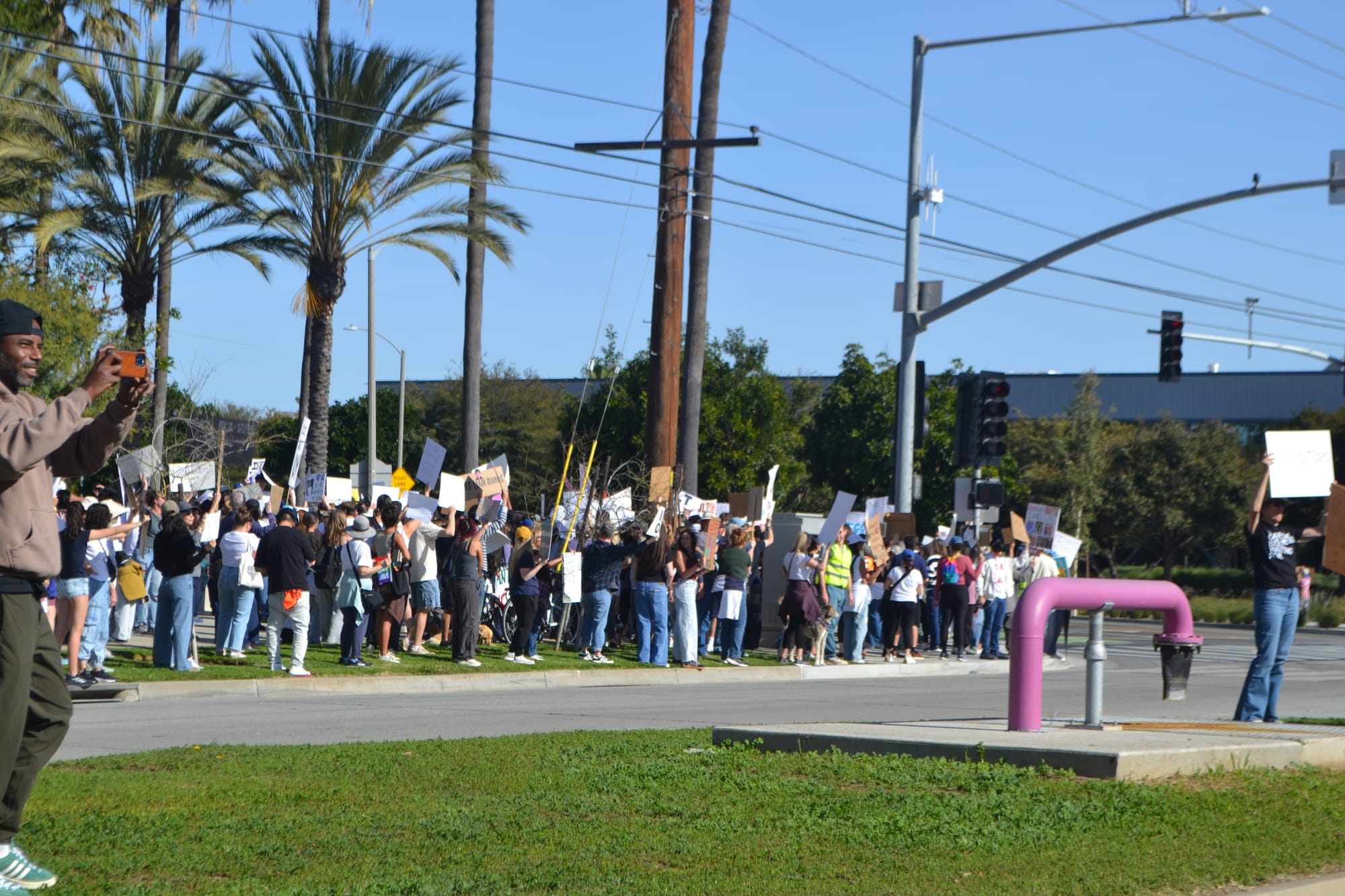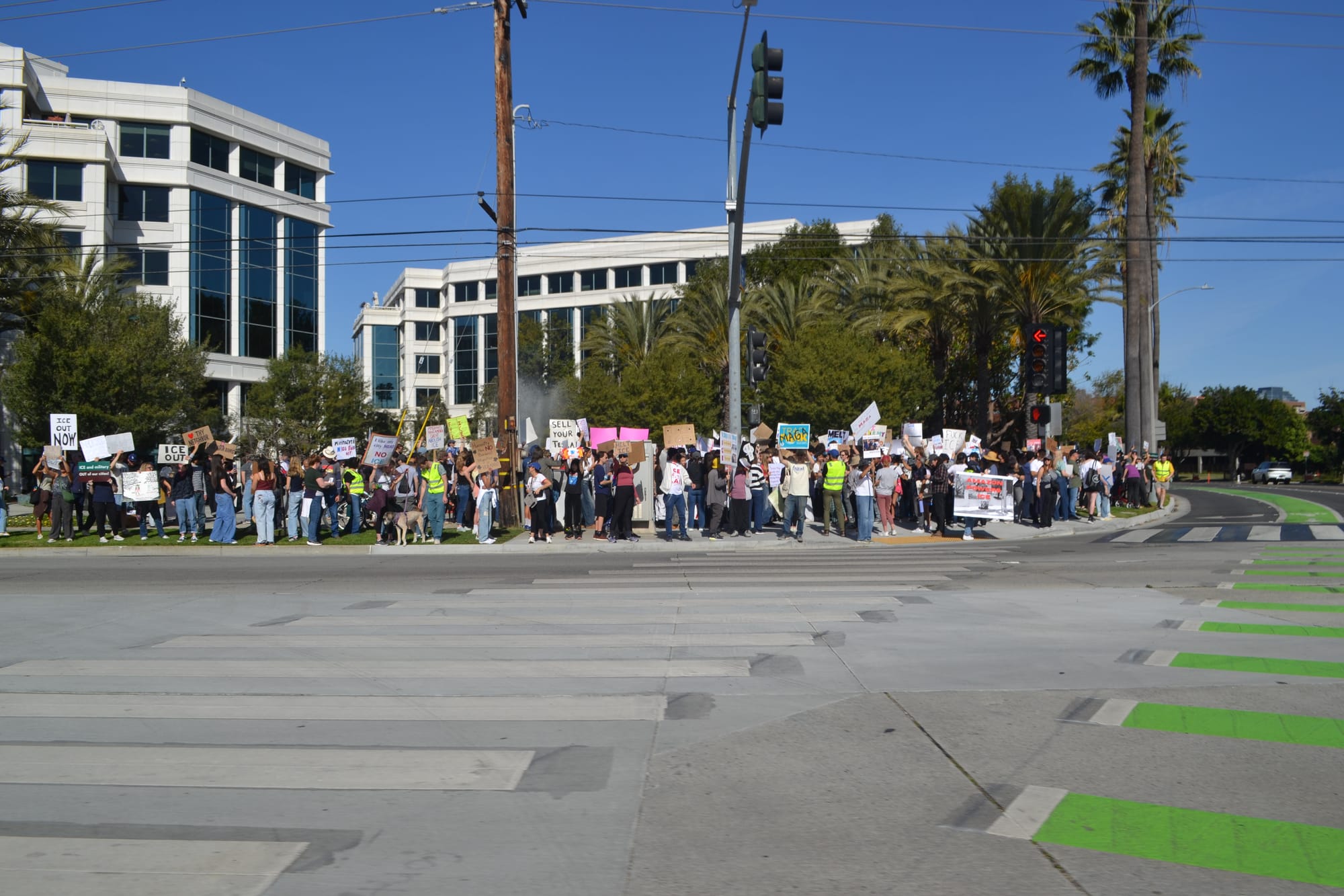 Protesters across the United States staged a nationwide “blackout” strike calling for no work, no school and no shopping to oppose the Trump administration’s immigration enforcement on Friday. Santa Monicans gathered along Olympic Blvd. to participate and specifically call out Amazon's affiliation with the federal government.