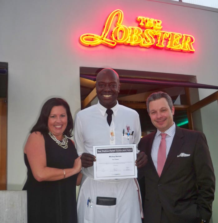 OCEAN AVE — The Santa Monica Convention & Visitors Bureau awarded its second Thelma Parks Tourism Spirit Award to Mickey Barnes, server at The Lobster restaurant.