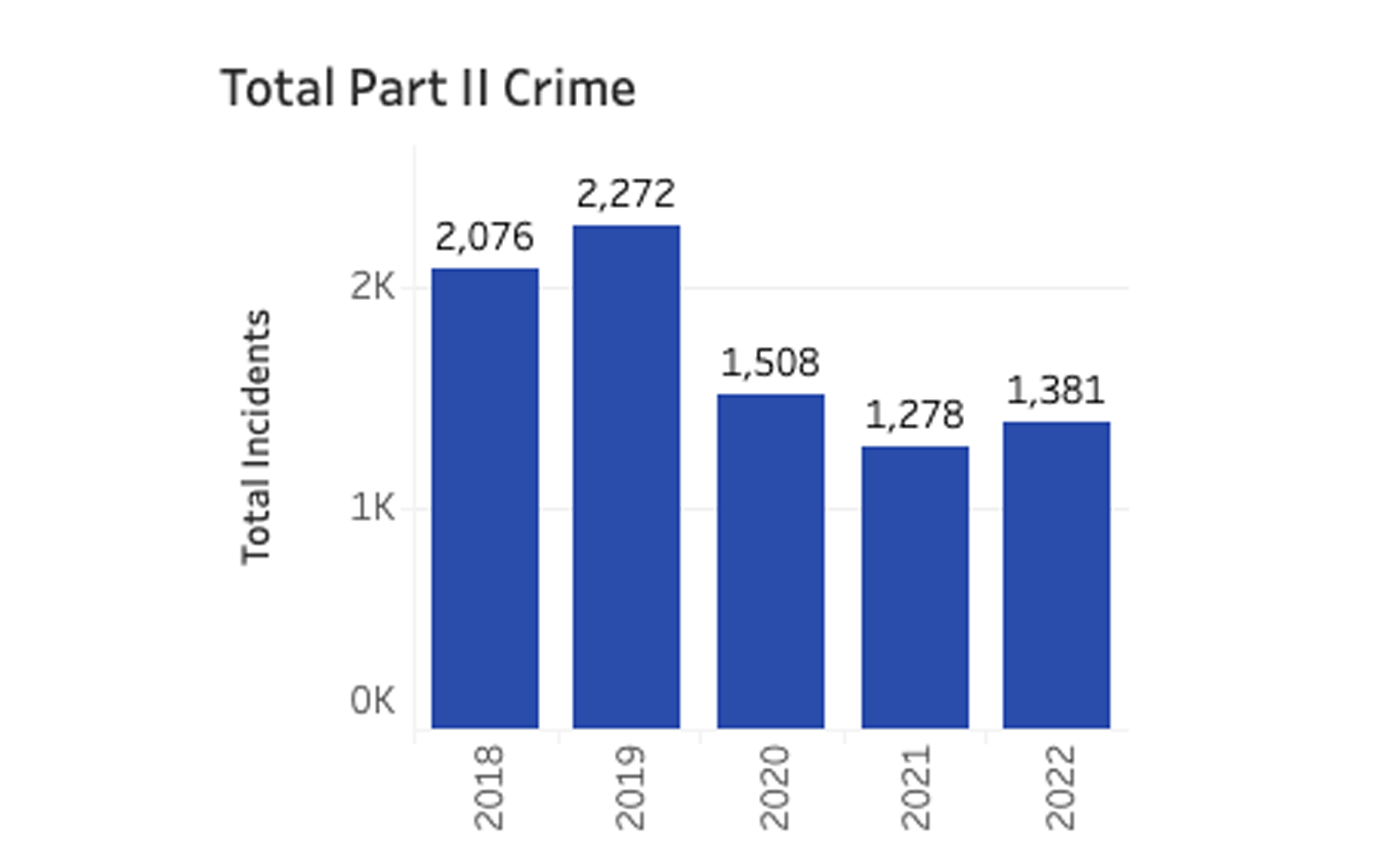 Aggravated assaults increased from 167 in 2021 to 187 in 2022 over the same time period. Firearm usage increased from 13 incidents to 19.