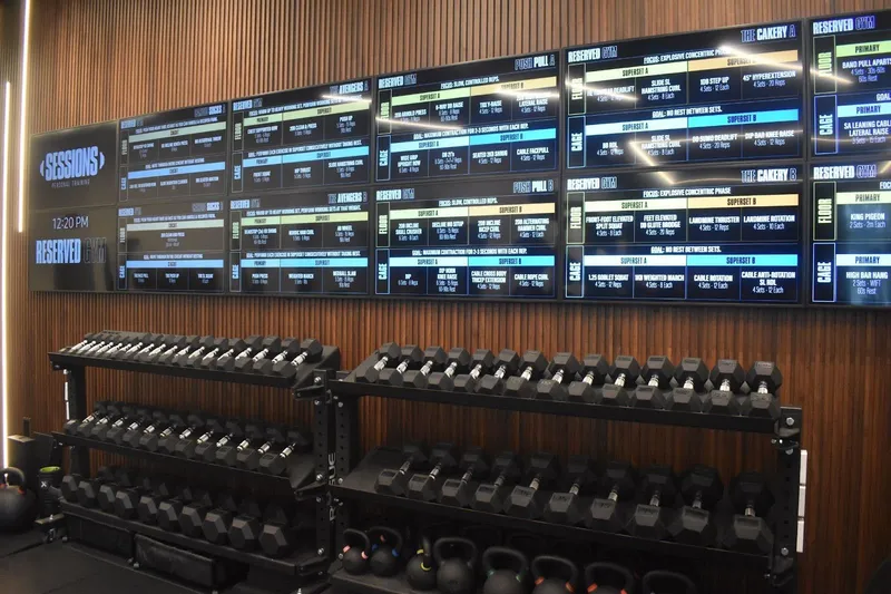 Taking semi-private PT to the next level at Sessions meant investing in new technologies to aid with workouts. New patrons are met with an in-depth intake process utilizing a 3D body scanner, in order to get different data points on balance, posture and body composition. When it's time to start a day’s workout, the Sessions hands-free program delivery application recognizes each individual and displays their specific workout on a television screen.