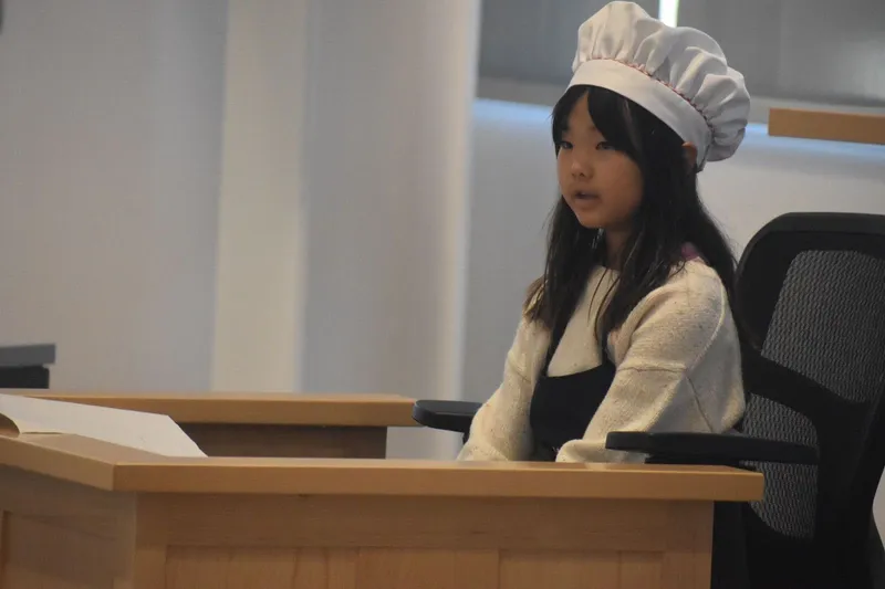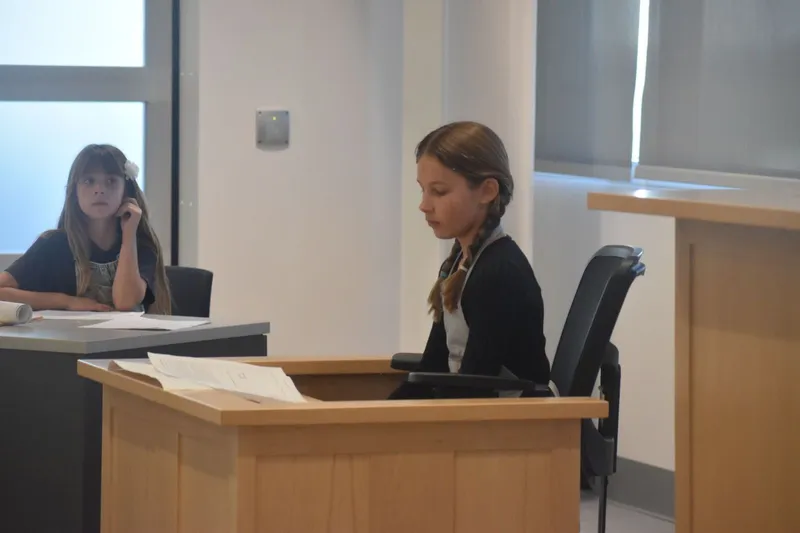 Finalizing the package was a lesson on civics and the court system, as different characters were put on trial. Students imagined a scenario where Hansel and Gretel were on trial for theft, battery and disturbing the peace via smashing the witch’s gingerbread houses and throwing her into an oven. They took roles of prosecution, defense, witnesses, a court reporter and a bailiff; learning how to prepare for each part of the system.