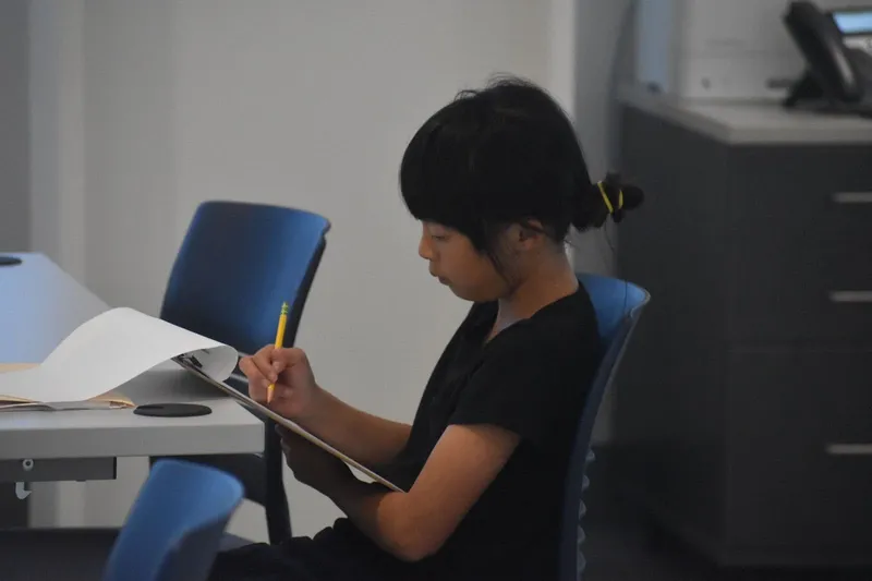 The class had been studying characters and story arc perspectives through the lens of fairy tales around the world, including trips to the Santa Monica Playhouse to see fairy tale plays re-imagined from other character’s eyes. Thinking about "what if a different character told that story?," students wrote their own versions of events.