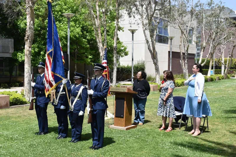 The event began with a formal presentation of colors by the University of California Air Force ROTC. Talaya Poindexter performed the national anthem, followed by the Pledge of Allegiance read by Martha Romano.