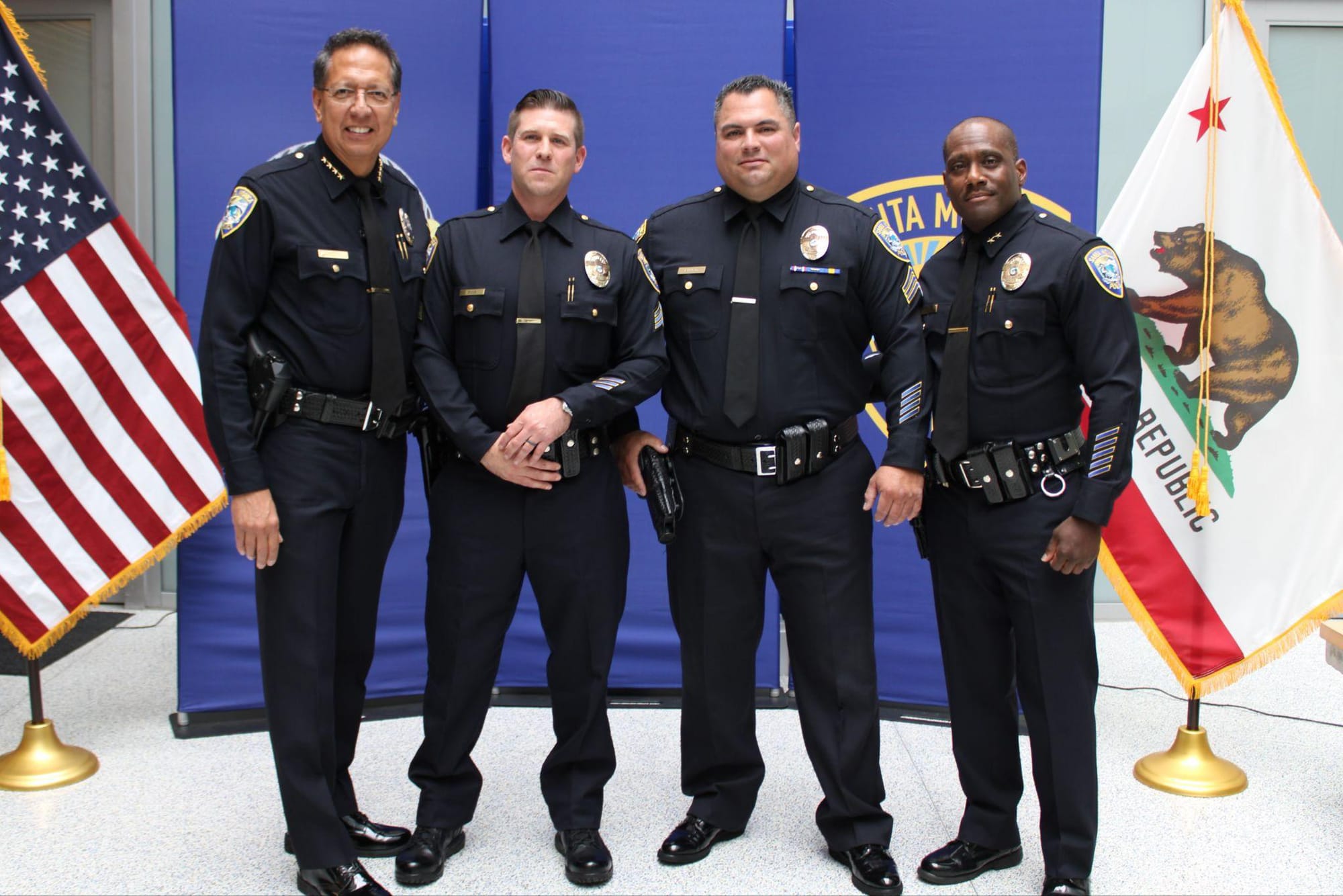 SMPD: The Santa Monica Police Department welcomed four new officers and promoted five others at a Thursday ceremony. Erika Soto is the daughter of a former SMPD detective and while the ceremony usually involves friends and family presenting new officers with their badge, Soto will wear her father’s badge for the first year of her service in recognition of her family’s law enforcement tradition.