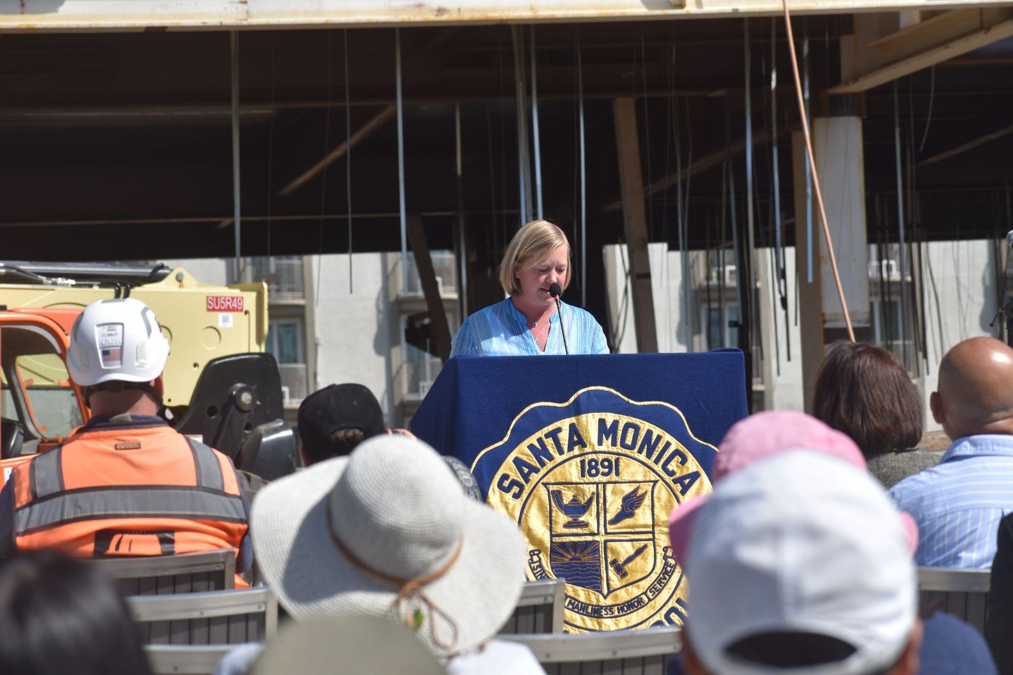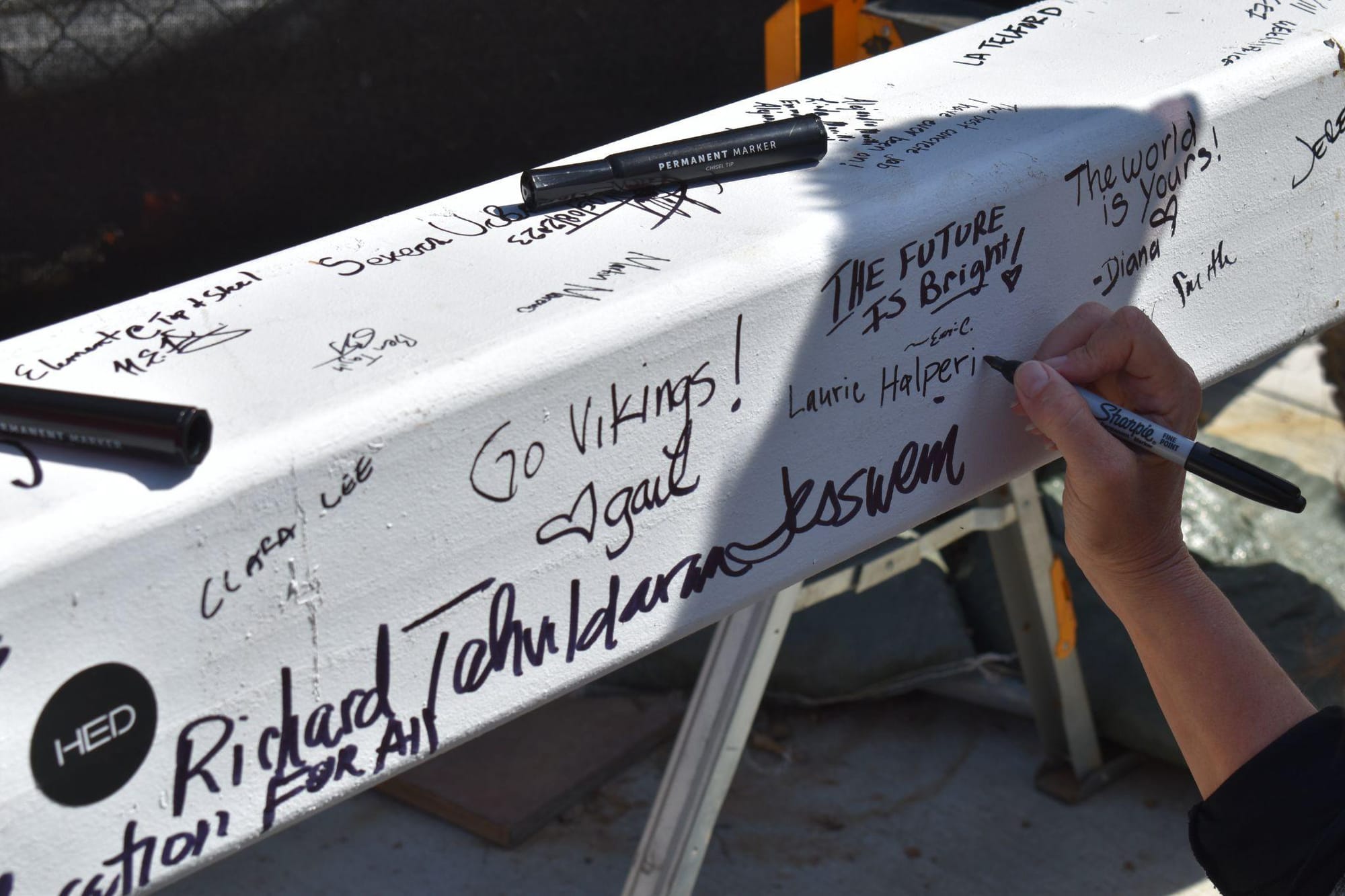 Attendees at the event, which included SMMUSD Board members, Samohi Principal Marae Cruce, Chief Operations Officer Carey Upton and other district staff, teachers and students, also signed the beams before they were lifted away.