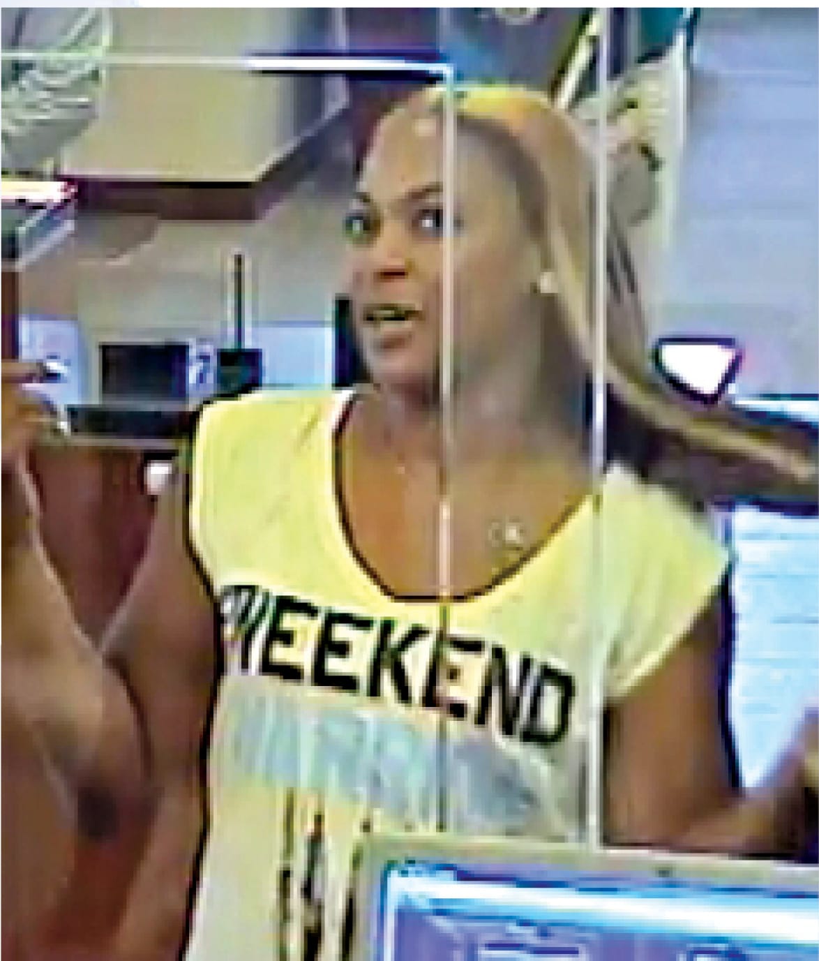 One of the suspects has been caught on surveillance video inside the bank as one of the fraudulent transactions was taking place. She is described as an African-American female between 25 and 30 years old with medium to muscular build.