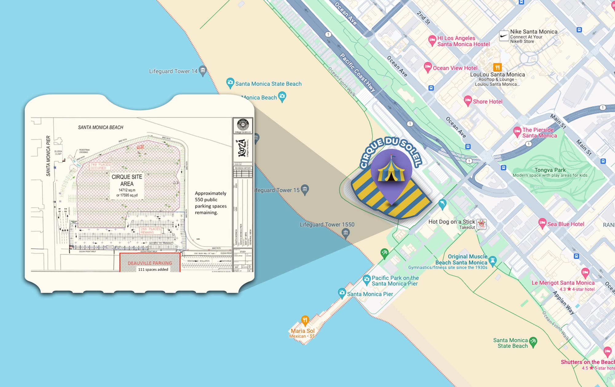 Cirque first performed next to the Santa Monica Pier in 1987. More recently, Cirque has staged productions in the Beach Parking Lot 1 North space, sometimes referred to as 1550 Pacific Coast Highway, in 2009, 2012 and 2014. Following Cirque’s 2009 Santa Monica stay, the City commissioned an economic impact study which concluded the net fiscal benefit in the City was approximately $16.7 million, equivalent to $22.5 million today accounting for inflation.