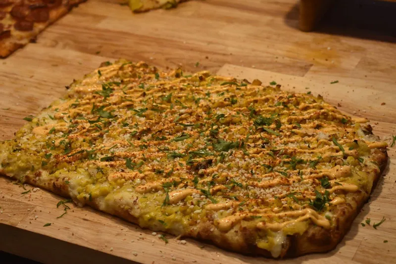The Triple Beam pie is derived from the streets of Italy, with dough made in a 48-hour fermentation process and baked in special golden deck ovens. The thinner, more square pizzas come in classic flavors like pepperoni to more refined creations like roasted mushroom and shallot, acorn squash and corn esquite. Robles is also setting up his plan for the fall season, keeping things fresh and using the opportunity to "educate people that pizza can actually be more" than just the typical New York slice.