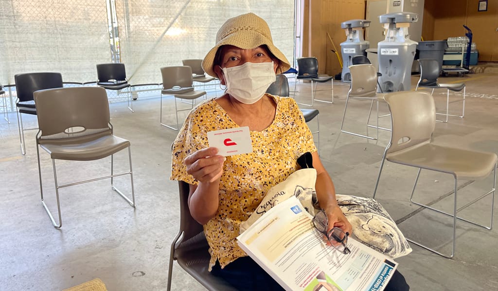 Floreza Silva: Floreza has been a patient at Venice Family Clinic for more than 10 years. She was relieved to get vaccinated. “I feel very good and I hope to be protected,” she said. Now that she’s vaccinated, she wants to see her grandchildren more. “I have barely seen them,” she said. When she received her DoorDash card, she smiled and said she would use it when she sees her grandchildren.
