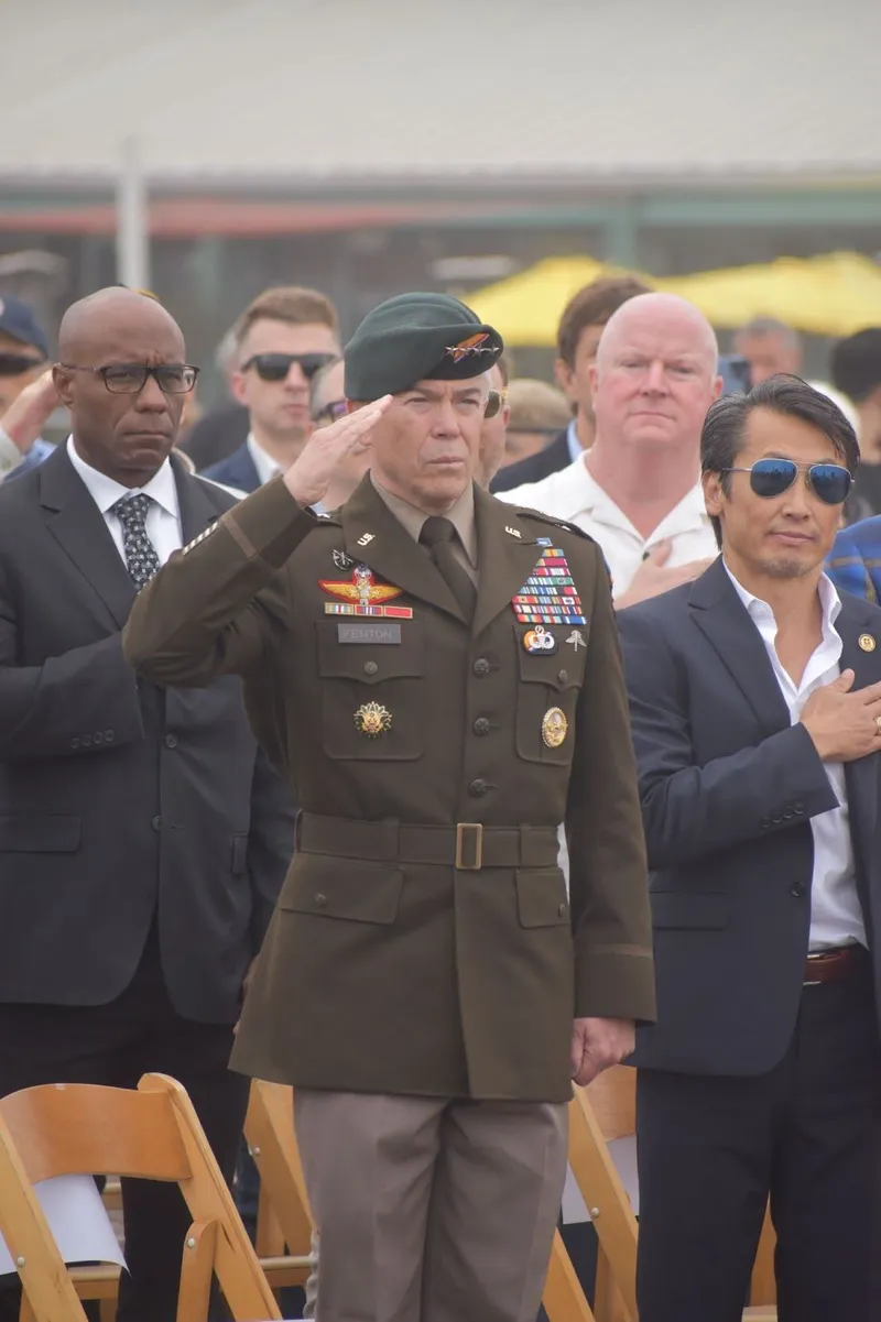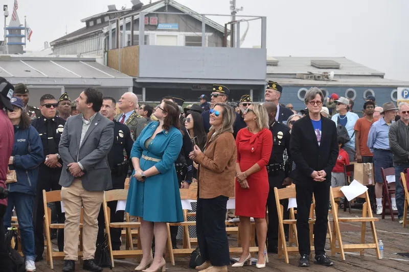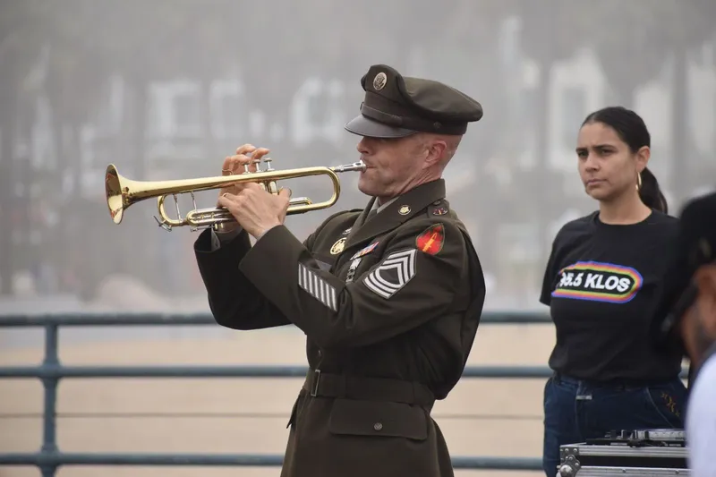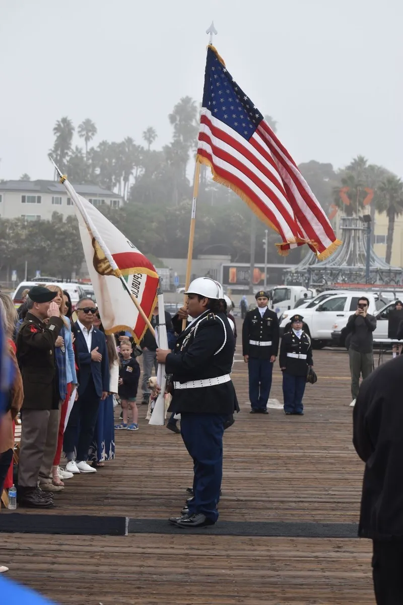 Santa Monica recognized local veterans with its annual event on the Santa Monica Pier. Veteran and City Councilman Dan Hall began the event by recognizing various officials in attendance and reflecting on his service. The event included a flyby by military aircraft but due to the heavy marine layer, the aircraft were obscured from view despite taking a second pass at the Pier.