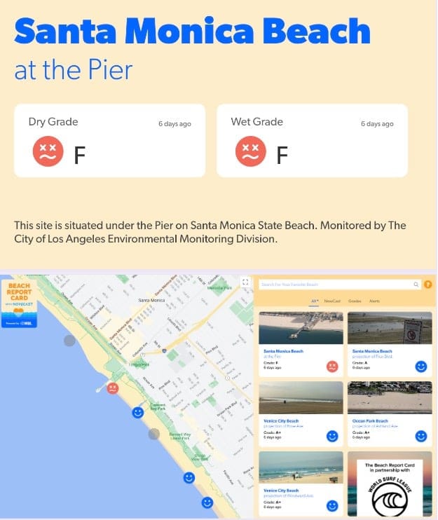 "To help maintain public safety, Heal the Bay created the Beach Report, which provides weekly and annual water quality grades based on bacterial pollution of more than 700 beaches from the state of Washington down to Tijuana, Mexico."