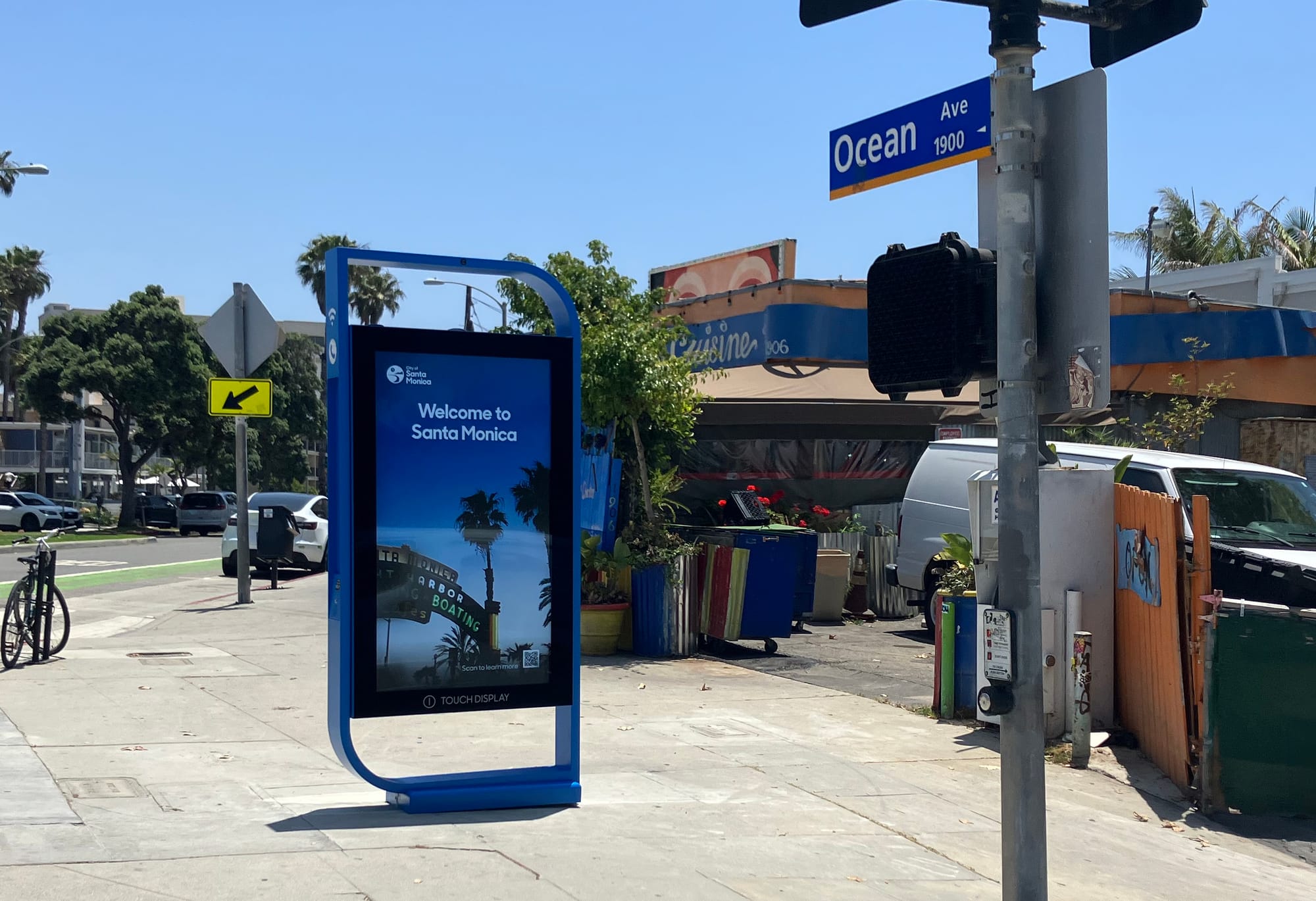 Based on the City’s website, the first phase of the rollout incorporates a total of six displays with a deployment date of July 1, 2024. Kiosks have been installed at the following locations, 4th/Wilshire (test location), Ocean/Pico (Cha Cha Chicken) and Ocean/Arizona (The Beacon). The three still to come as part of this primary placement are Ocean/Santa Monica, Ocean/Broadway and Boardwalk/Pico.