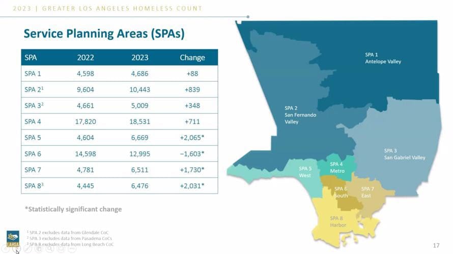 LAHSA released the results of the 2023 Homeless Count and said homelessness increased by 9% to 75,518 in Los Angeles County and the City of Los Angeles saw a 10% increase to 46,260.