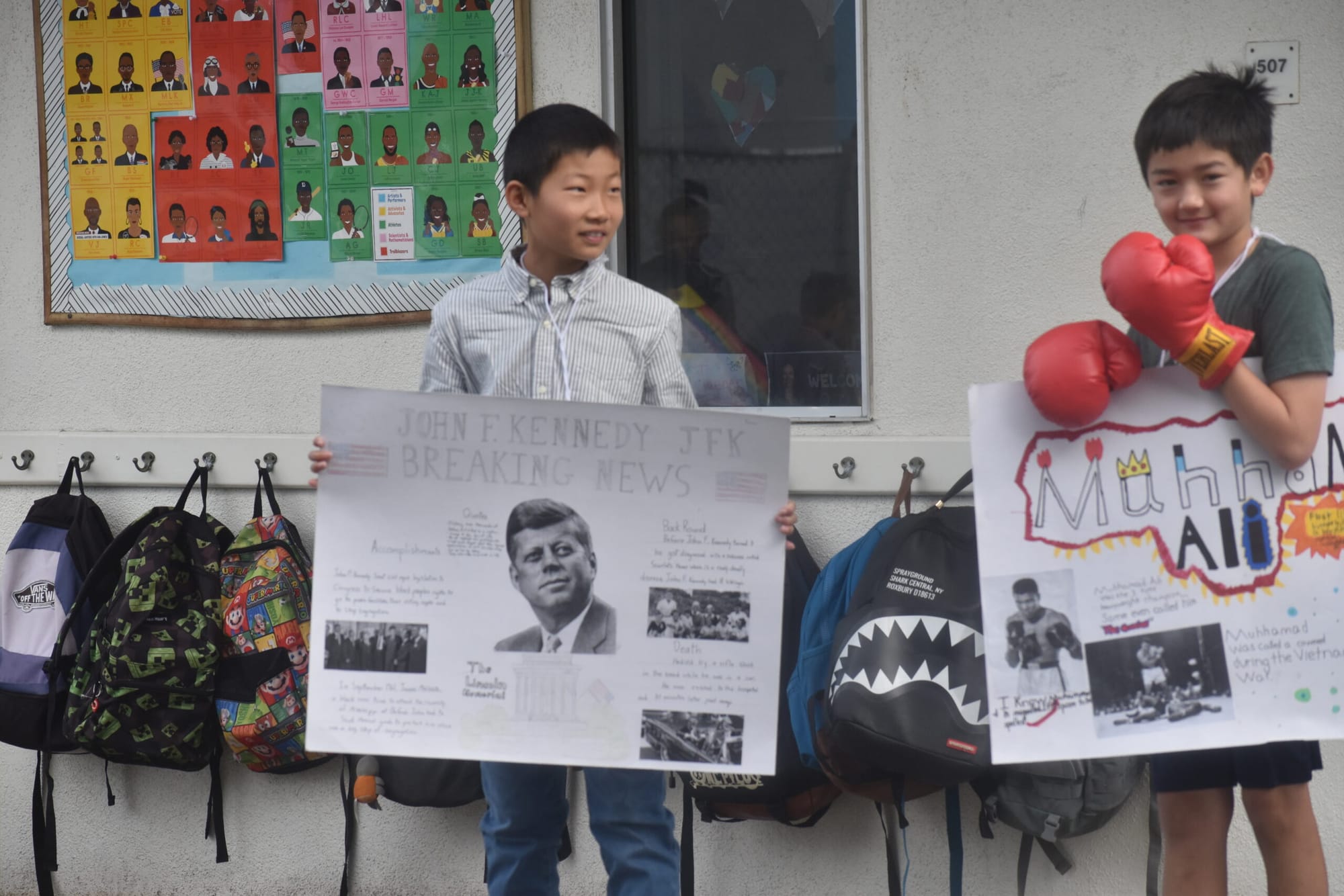 Student attire was wholly unique as well, with many dressing in garb or accessories depicting their topic. This applied to those serenading praise on the impacts of sports figures, such as one student donning boxing gloves for a presentation on Muhammad Ali, and two that selected Los Angeles Lakers legend Kobe Bryant and wore his purple-and-gold jersey.