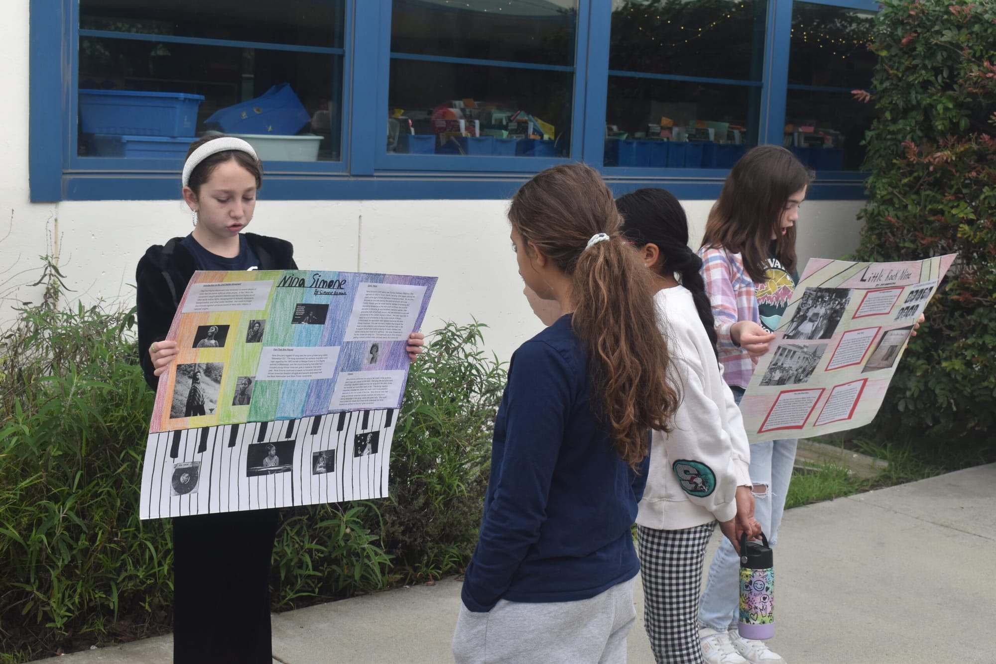 During a Friday morning session, the fifth-grade students at Will Rogers presented the "Living Museum" to fellow students, teachers and parents, showcasing a portion of the Civil Rights Movement through art and speech. Throughout the outside halls and courtyard portion of the school were fifth-graders providing factoids about Civil Rights leaders, events and topics learned during a unit on the movement, as well as more modern contributors.